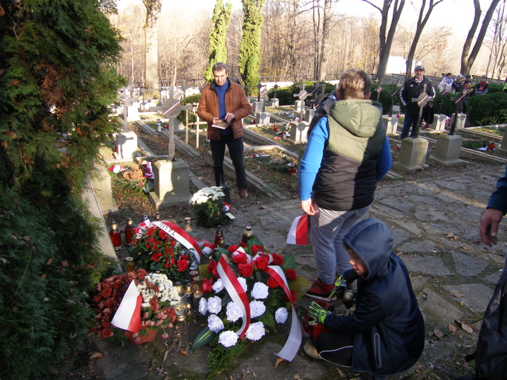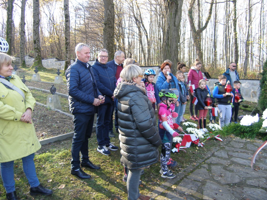 Jak co roku, zaszczycił nas swoją obecnością wójt gminy Pleśna Józef Knapik. Był również obecny burmistrz Wojnicza Tadeusz Bąk. Część oficjalna rajdu odbyła się przy grobie wojniczanina, uczestnika bitwy pod Łowczówkiem gen. Gustawa Gryf Łowczowskiego. Odwiedziliśmy także inne groby mieszkańców naszej gminy poległych pod Łowczówkiem: legionistów Juliana Ożgi i Konrada Kogutowicza oraz żołnierza armii austriackiej Jana Wzorka z Zakrzowa. Pięknie o bitwie i gen. Łowczowskim mówił pan Józef Knapik. Podniosłości tej uroczystości dodały sygnały odgrywane przez Tadeusza Moleckiego.