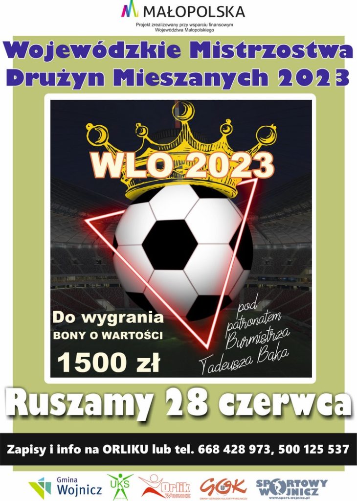 Uczniowski Klub Sportowy z Wielkiej Wsi oraz Orlik z Wojnicza zapraszają do wzięcia udziału w VII Wojnickiej Lidze Orlika 2023 o nazwie Wojewódzkie Mistrzostwa Drużyn Mieszanych 2023 pod patronatem Burmistrza Wojnicza Tadeusza Bąka.