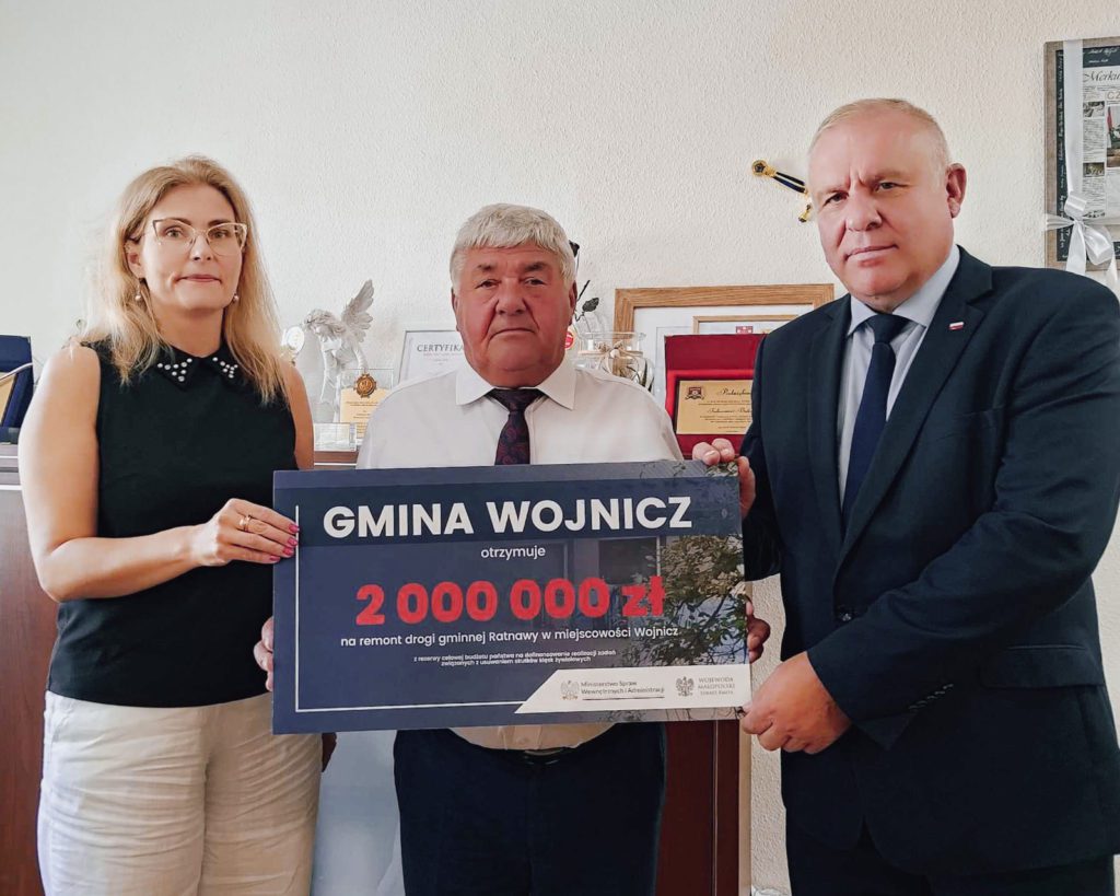 W poniedziałek, 13 września gminę Wojnicz odwiedził Wicewojewoda Małopolski Ryszard Pagacz, który osobiście wręczył promesę okolicznościowa burmistrzowi Wojnicza, Tadeuszowi Bąkowi w wysokości 2 mln zł na remont drogi gminnej Ratnawy w Wojniczu.