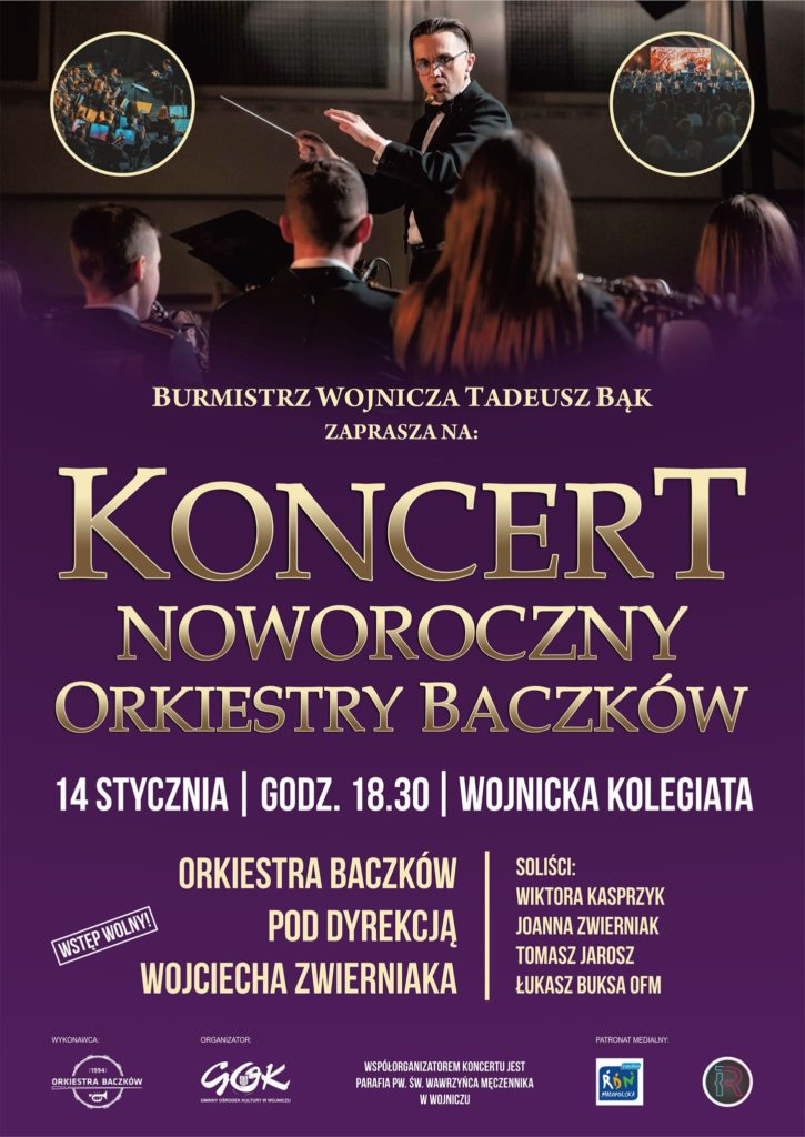 Serdecznie zapraszamy na Noworoczny Koncert Orkiestry Baczków (finalistów programu „Mam Talent!”) pod dyrygentutrą Wojciecha Zwierniaka, który odbędzie się już za kilka dni, a dokładnie w dniu 14 stycznia o godz. 18.30 w Wojnickiej Kolegiacie. Zespół swoją muzyką pragnie wnieść światłość oraz nadzieję na Nowy Rok.