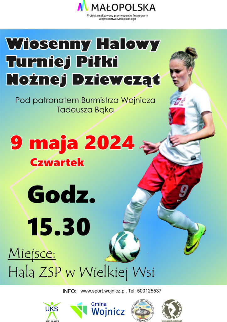 Zapraszamy na Wiosenny Halowy Turniej Piłki Nożnej Dziewcząt pod patronatem Burmistrza Wojnicza Tadeusza Bąka.