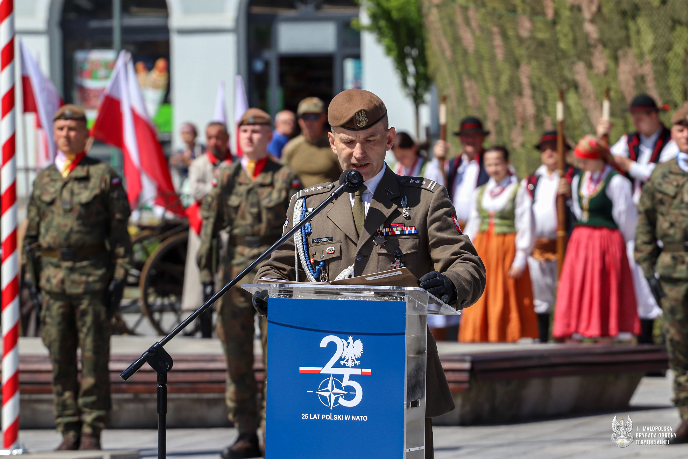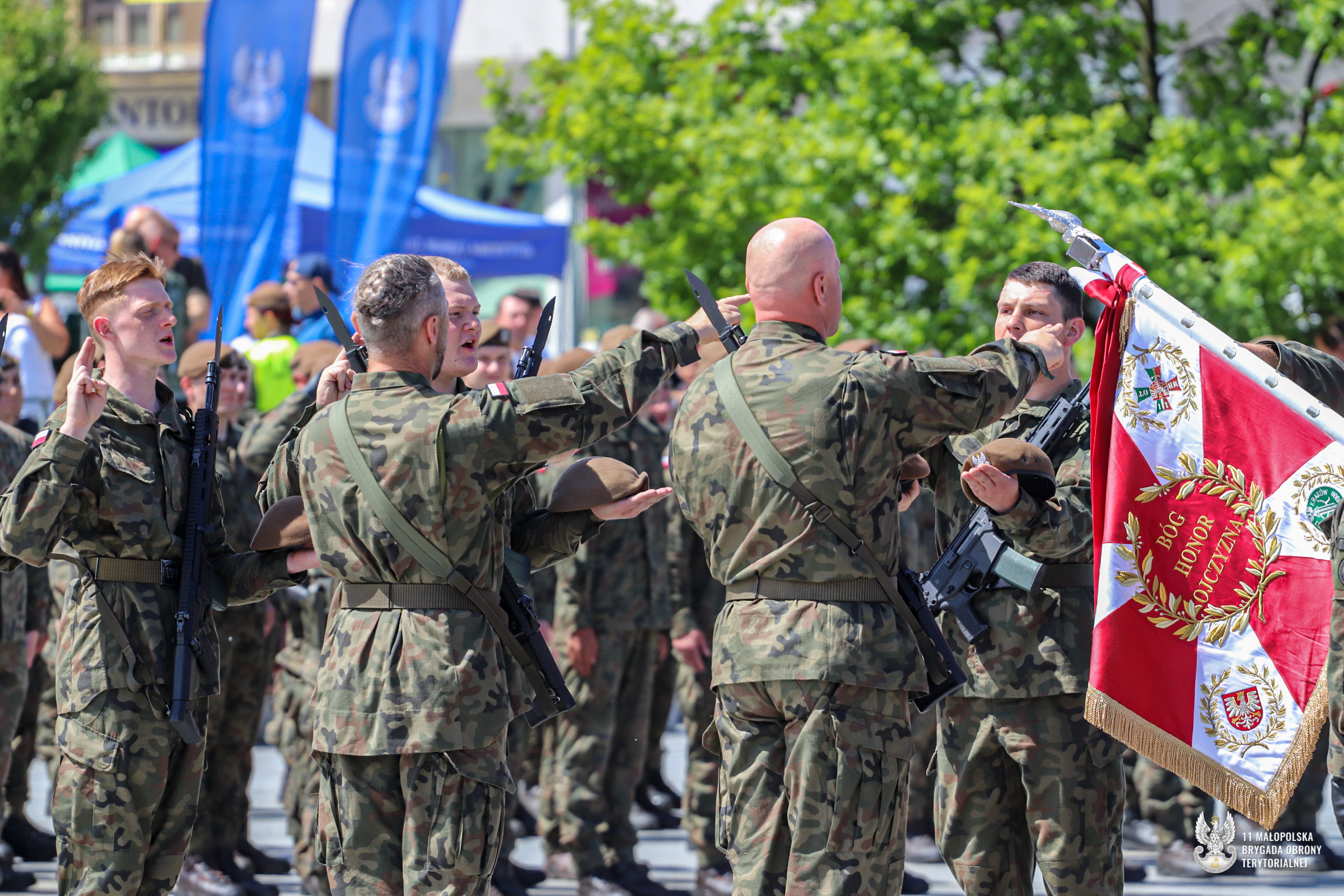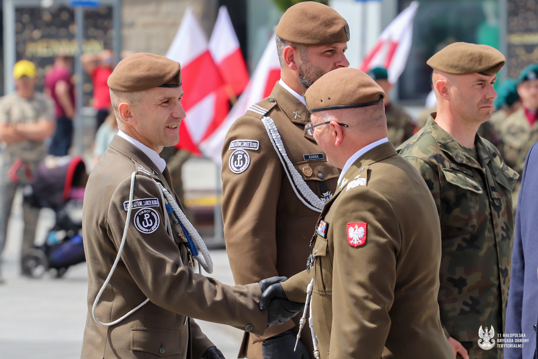 Poza szefem MON, żołnierzom podczas uroczystości towarzyszyli: Dowódca Operacyjny Rodzajów Sił Zbrojnych gen. dywizji Maciej Klisz, Dowódca Wojsk Obrony Terytorialnej gen. bryg. dr Krzysztof Stańczyk, Wojewoda Małopolski Krzysztof Jan Klęczar oraz dowódcy małopolskich jednostek wojskowych, włodarze miast i delegacja węgierskich terytorialsów, którzy od 6 lat intensywnie współpracują z żołnierzami małopolskiej brygady. Uroczystościom towarzyszył ceremoniał wojskowy, w tym salut armatni oraz pokaz musztry paradnej. Oprawę muzyczną zapewniła Orkiestra Wojsk Obrony Terytorialnej.