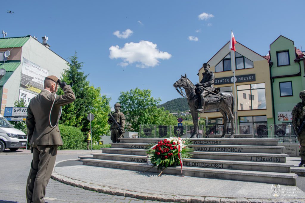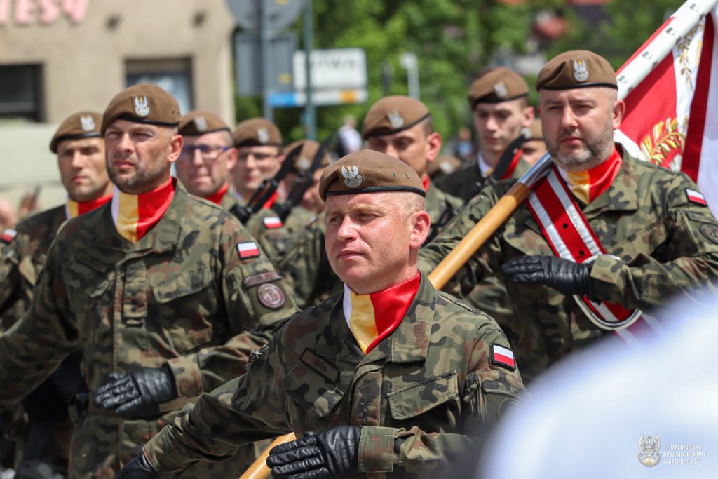 „Drodzy Terytorialsi, którzy złożyliście dziś przysięgę, dziękuję za służbę państwu polskiemu i wstąpienie w szeregi sił zbrojnych RP, za niezłomną postawę niesienia wsparcia i pomocy. Jesteście spadkobiercami tradycji Armii Krajowej. Znak Polski Walczącej jest na waszych mundurach, a patronem jest gen. Leopold Okulicki ps. Niedźwiadek. Te symbole świadczą o tym, kim jesteście i konstytuują wasze działania” powiedział Minister Obrony Narodowej Władysław Kosiniak-Kamysz do żołnierzy podczas uroczystej przysięgi na limanowskim rynku. Wcieleni żołnierze do propagowania idei Armii Krajowej przygotowywali się przez 16 dni. Intensywne szkolenie, zakończone egzaminem poligonowym tzw. „pętlą taktyczną”, otworzyło drzwi do służby w szeregach małopolskich terytorialsów. Ich uroczysta przysięga wpisuje się w misję jednostki, która wspiera Małopolan już od 6 lat. Wydarzenie jest częścią obchodów 80. rocznicy zrzutu cichociemnych w Wierzbnie koło Proszowic. Ostatnia konspiracyjna misja gen. Leopolda Okulickiego miała kluczowe znaczenie dla dalszych losów Armii Krajowej i przebiegu Powstania Warszawskiego. Gen. Okulicki jest też patronem żołnierzy z polską walczącą na mundurach.