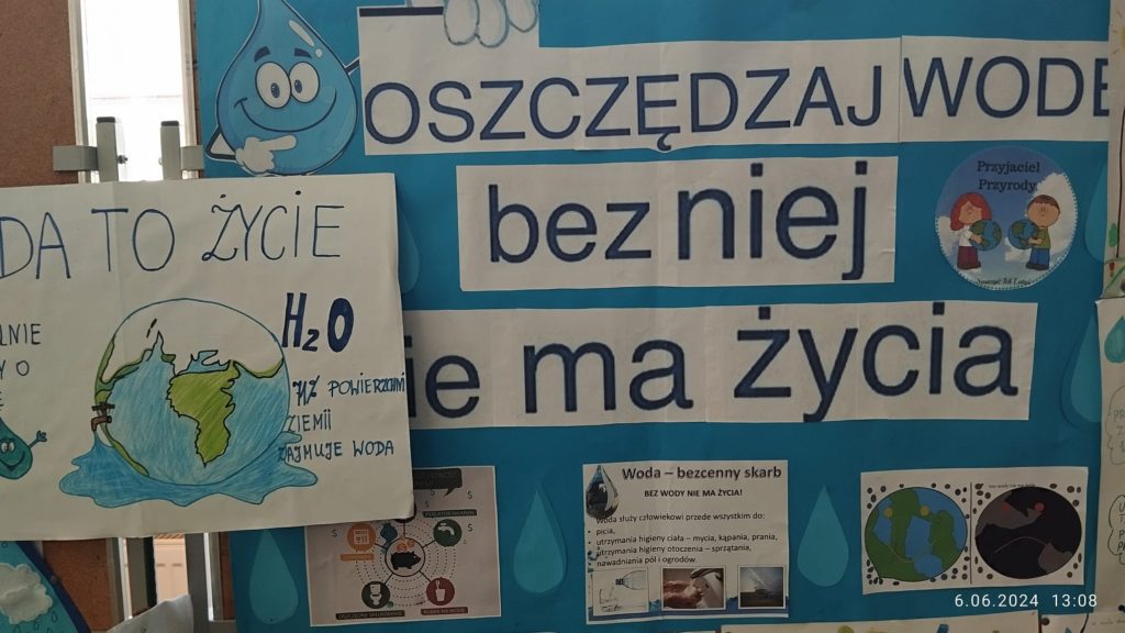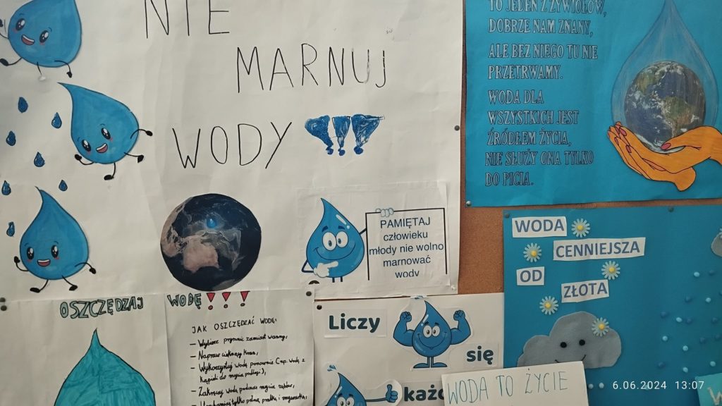 - organizacja Dnia Wody-tworzenie plakatów promujących oszczędność wody oraz ich wystawa, organizacja happeningu pt. „Woda to życie”;
