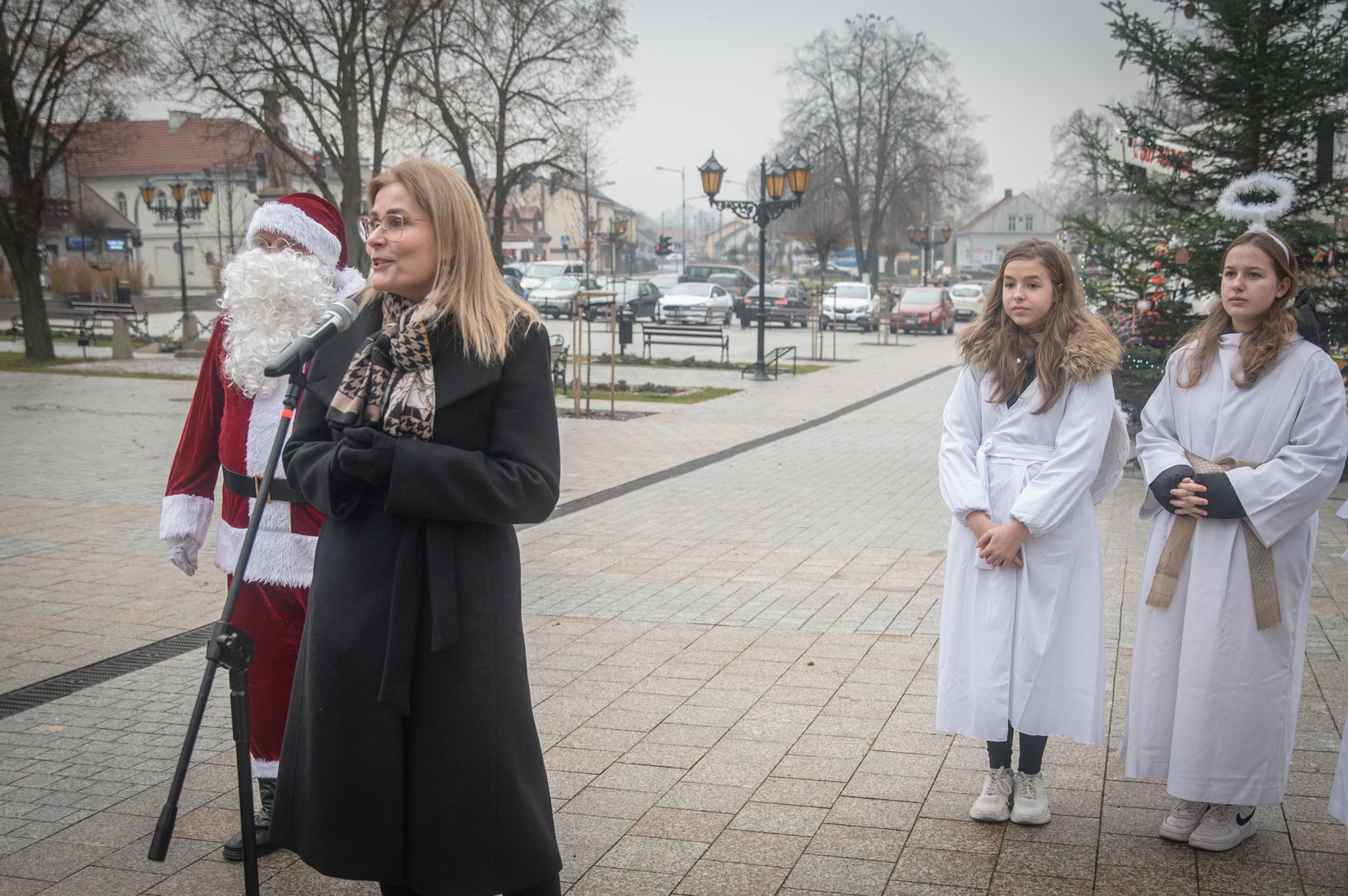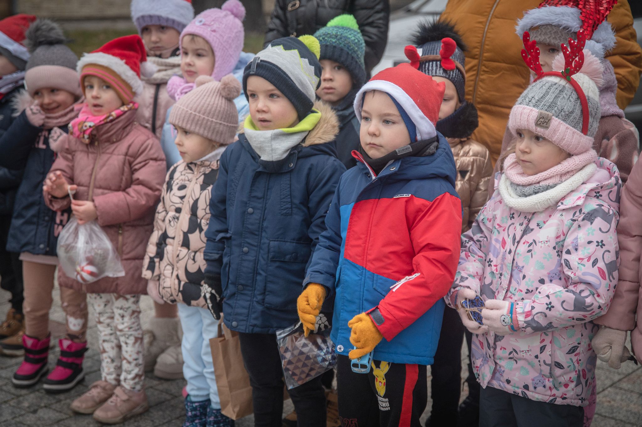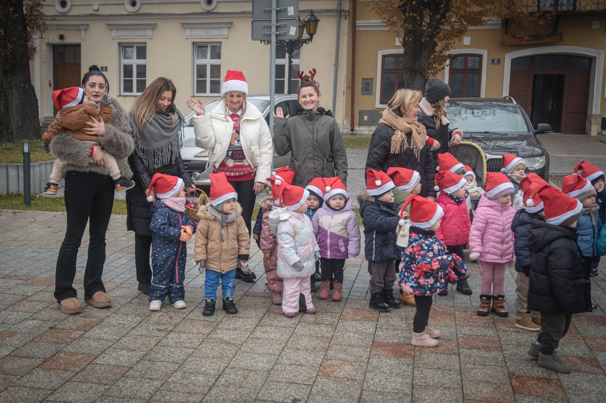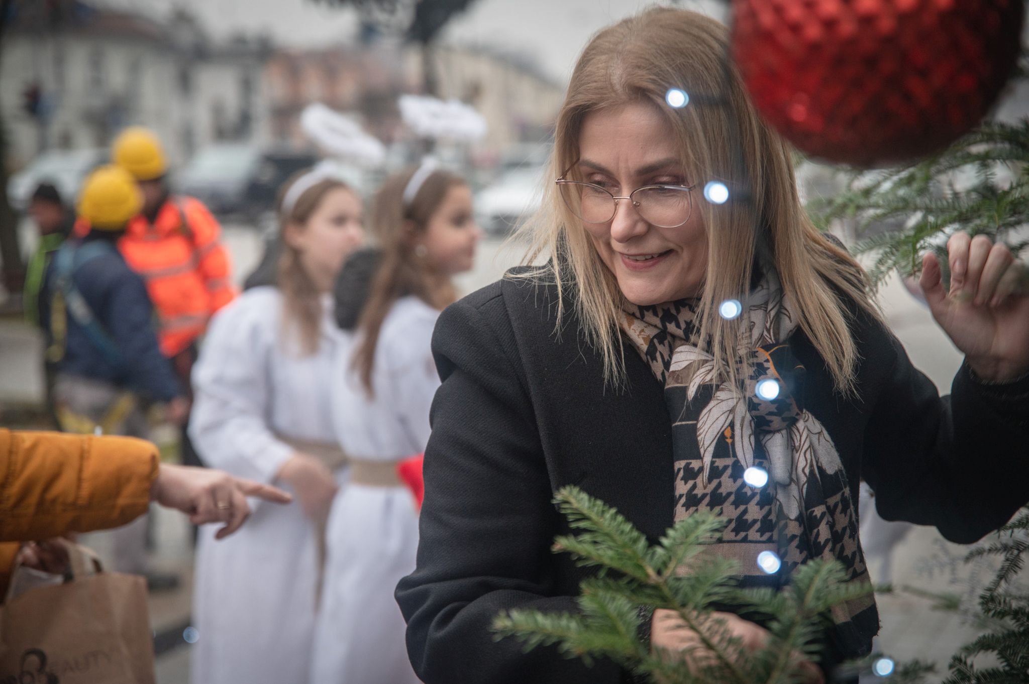 Maluchy ze żłobka i przedszkoli, w towarzystwie swoich opiekunów oraz nauczycieli, z zapałem wieszały własnoręcznie wykonane ozdoby na świątecznym drzewku. Każda z dekoracji była jedyna w swoim rodzaju i dodawała unikalnego uroku choince, która teraz dumnie zdobi rynek, będąc symbolem wspólnoty i radosnego oczekiwania na Święta Bożego Narodzenia.