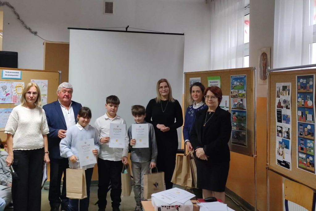 Plakaty i komiksy można obejrzeć na wystawie pokonkursowej. Laureaci otrzymali nagrody ufundowane przez GOPS oraz dyplomy. Organizatorkami działań, wspieranych przez dyrektor szkoły Annę Maziarz, są pedagog szkolna Ewa Matejska i Gabriela Ciasnocha, nauczycielka informatyki.
