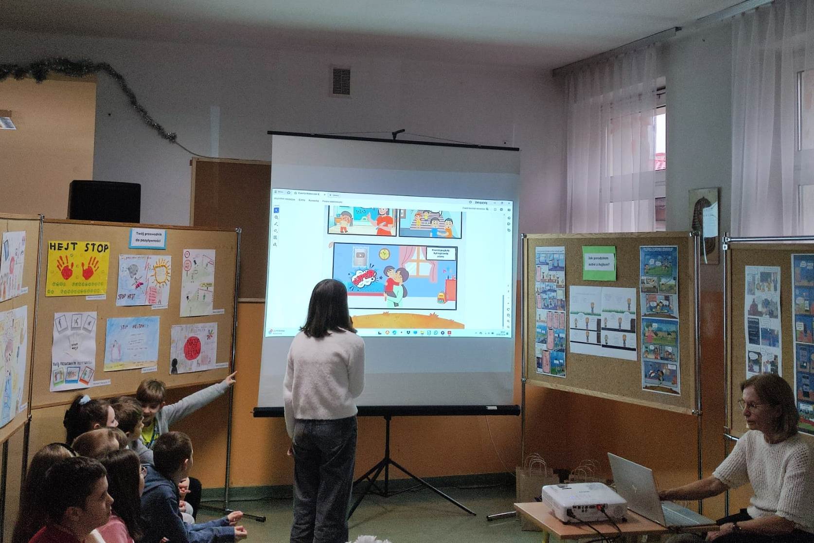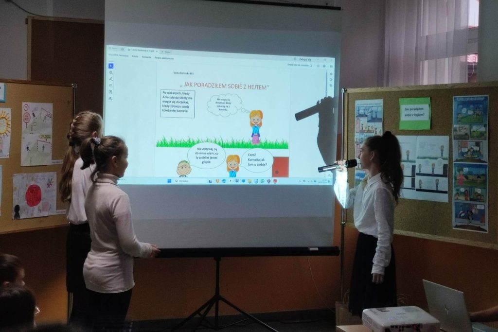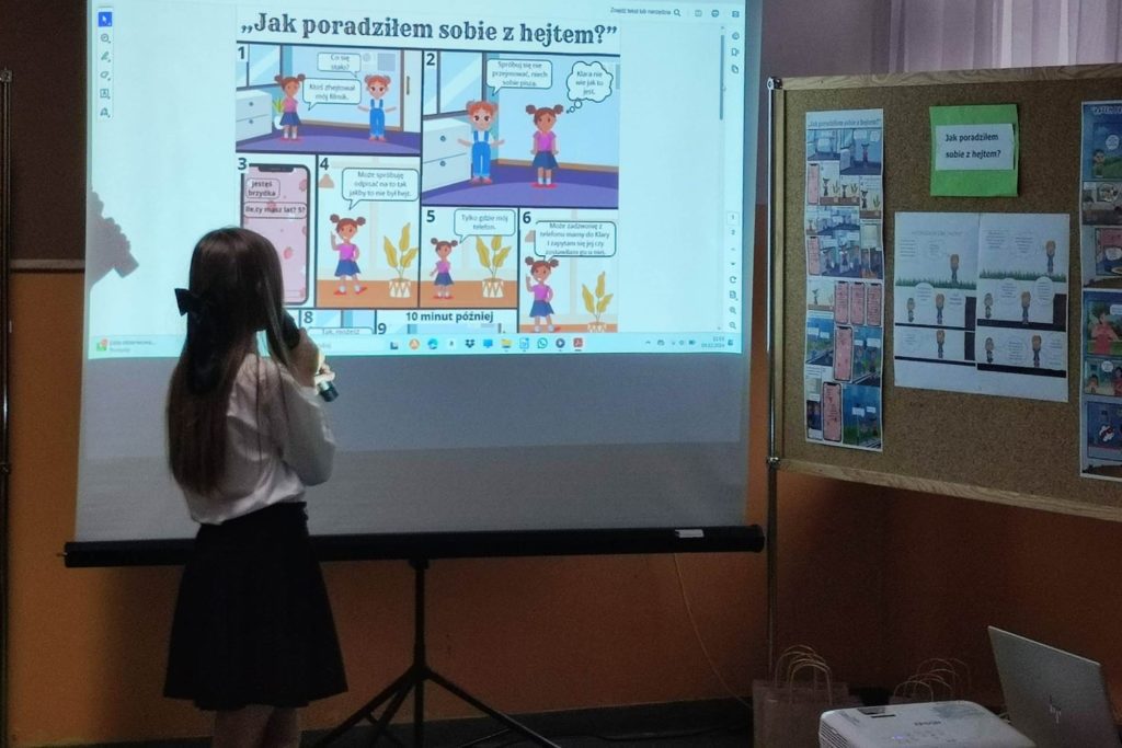 Autorzy komiksów – uczniowie klas V – VIII, prezentując swoje prace, wykazali się dojrzałością i mądrością w radzeniu sobie z hejtem przez wykreowanych w komiksach bohaterów: rozmowy z osobą podejrzewaną o hejt, powiedzenie rodzicom, zgłoszenie problemu do nauczyciela czy wychowawcy, poszukanie wsparcia u przyjaciół czy innych osób doświadczonych hejtem, skorzystanie z pomocy psychologa. Na plakatach nie zabrakło pozytywnych przykładów, ale także numeru zaufania dla dzieci i młodzieży: 116 111 (ogólnopolski anonimowy bezpłatny, czynny całą dobę przez 7 dni w tygodniu).