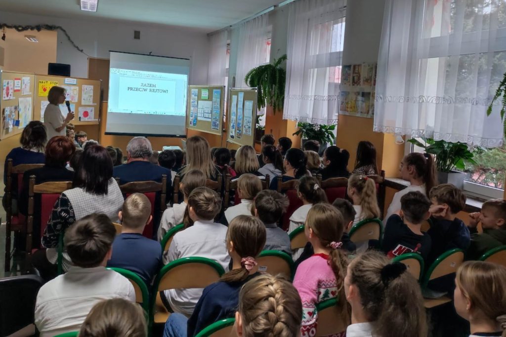Razem przeciw hejtowi! – to hasło przewodnie spotkania społeczności szkoły podstawowej ZSP w Wielkiej Wsi, podsumowującego działania profilaktyczne mające na celu promowanie stylu życia bez przemocy, uwrażliwienie na siłę słów i uczenie radzenia sobie z hejtem. Podsumowano konkursy profilaktyczne: plastyczny na plakat: „Hejt stop: Twój przewodnik do pozytywności” oraz na komiks w wersji elektronicznej: „Jak poradziłem sobie z hejtem?” W uroczystości uczestniczyli Burmistrz Wojnicza Tadeusz Bąk i Zastępca burmistrza Joanna Zając.