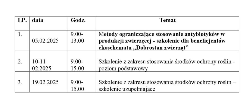 Gmina Wojnicz zaprasza rolników na cykl szkoleń, które odbędą się w lutym 2025 roku w Domu Grodzkim w Wojniczu przy ul. Długiej 82. Szkolenia te mają na celu poszerzenie wiedzy z zakresu nowoczesnych metod produkcji rolniczej i ochrony roślin.