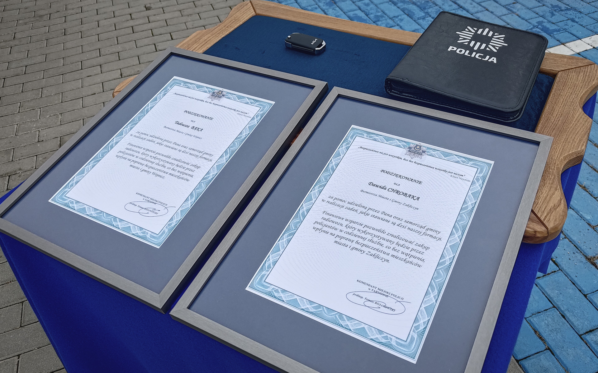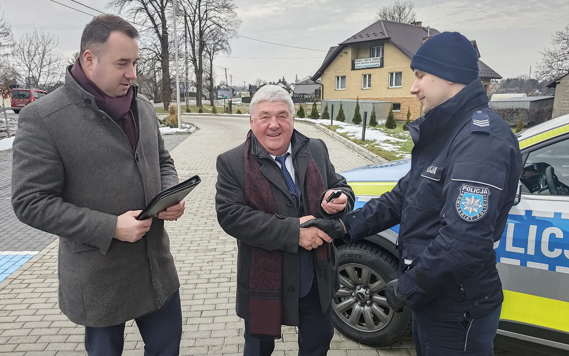 Podczas uroczystości obecni byli m.in. Komendant Komisariatu Policji w Wojniczu Marek Ptak, Burmistrz Miasta i Gminy Zakliczyn Dawid Chrobak oraz Burmistrz Wojnicza Tadeusz Bąk. Komendant Marek Ptak wyraził podziękowania dla przedstawicieli samorządów za ich zaangażowanie i wsparcie finansowe, które przyczyniają się do poprawy bezpieczeństwa w regionie. Podkreślił, że to nie pierwszy sprzęt przekazany w ramach współpracy między samorządem a Policją.