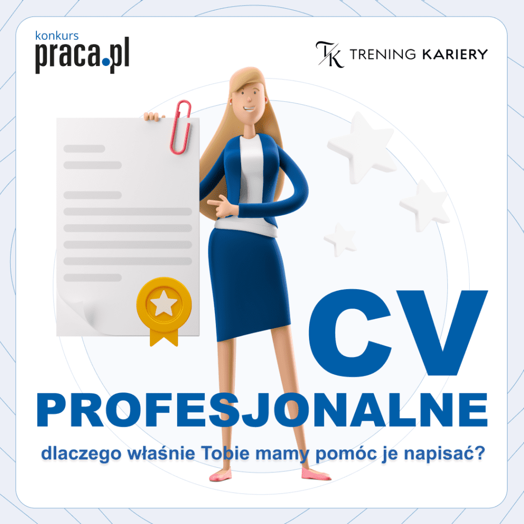 Portal Praca.pl wraz ze swoim partnerem Trening Kariery właśnie rusza z konkursem ‘ Profesjonalne CV – dlaczego właśnie Tobie mamy pomóc je napisać?’,w którym główną nagrodą będzie pomoc w przygotowaniu CV. Naszym celem jest zachęcenie wszystkich uczestników do tego by budowali swoją karierę w sposób bardziej przemyślany i świadomy, jak również do tego by aktywnie poszukiwali nowych wyzwań.