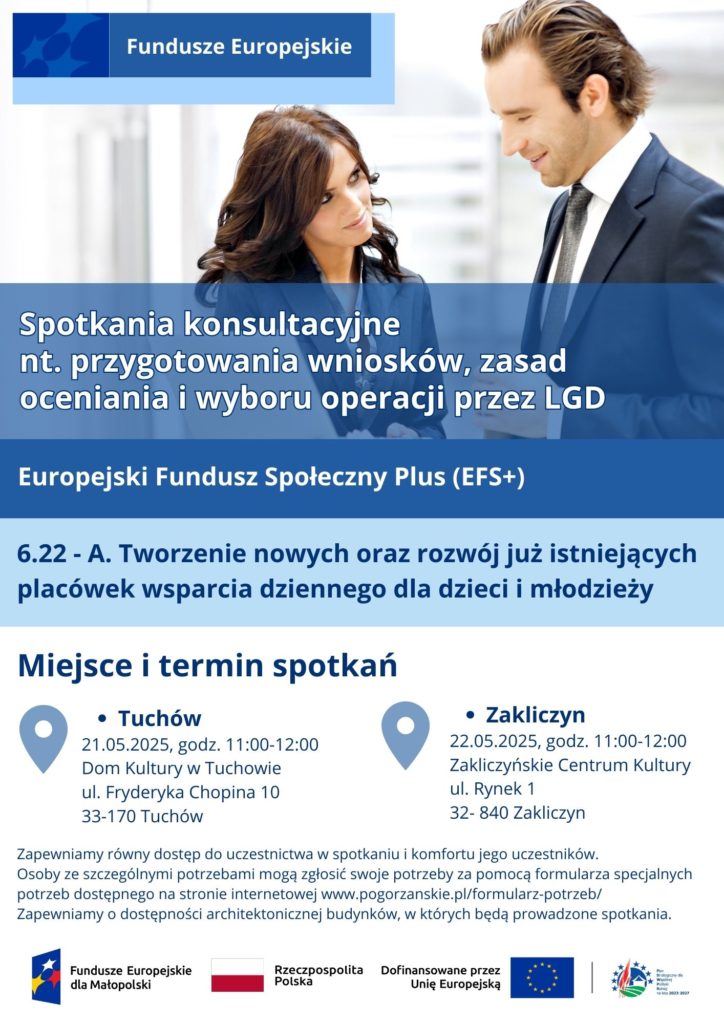 Podczas spotkań przedstawione zostaną m.in. zasady oceny i wyboru operacji oraz kryteria wyboru projektów, w ramach EFS+ (Europejski Funduszu Społeczny Plus).