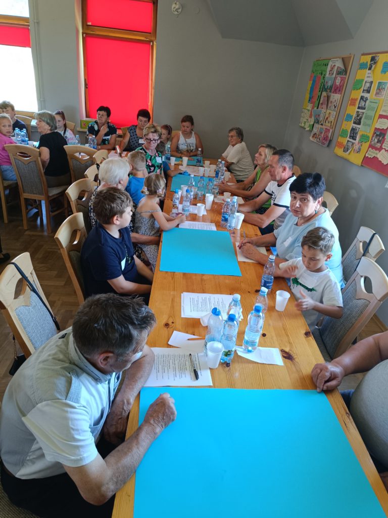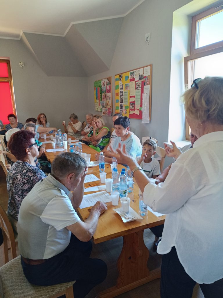 Uczestników serdecznie powitano przy aromatycznej kawie i herbacie oraz domowych wypiekach przygotowanych przez niezastąpione Koło Gospodyń Wiejskich w Wielkiej Wsi. W przyjaznej atmosferze odbyło się wzajemne zapoznanie i pierwsze zabawy integracyjne, które poprowadziła pani Maria Wantuch – doświadczona pedagog, wykładowczyni Akademii Tarnowskiej i aktywna członkini Uniwersytetu Trzeciego Wieku. Jej ciepło, zaangażowanie i umiejętność pracy z grupą stworzyły wyjątkową przestrzeń do wspólnej zabawy i współpracy.