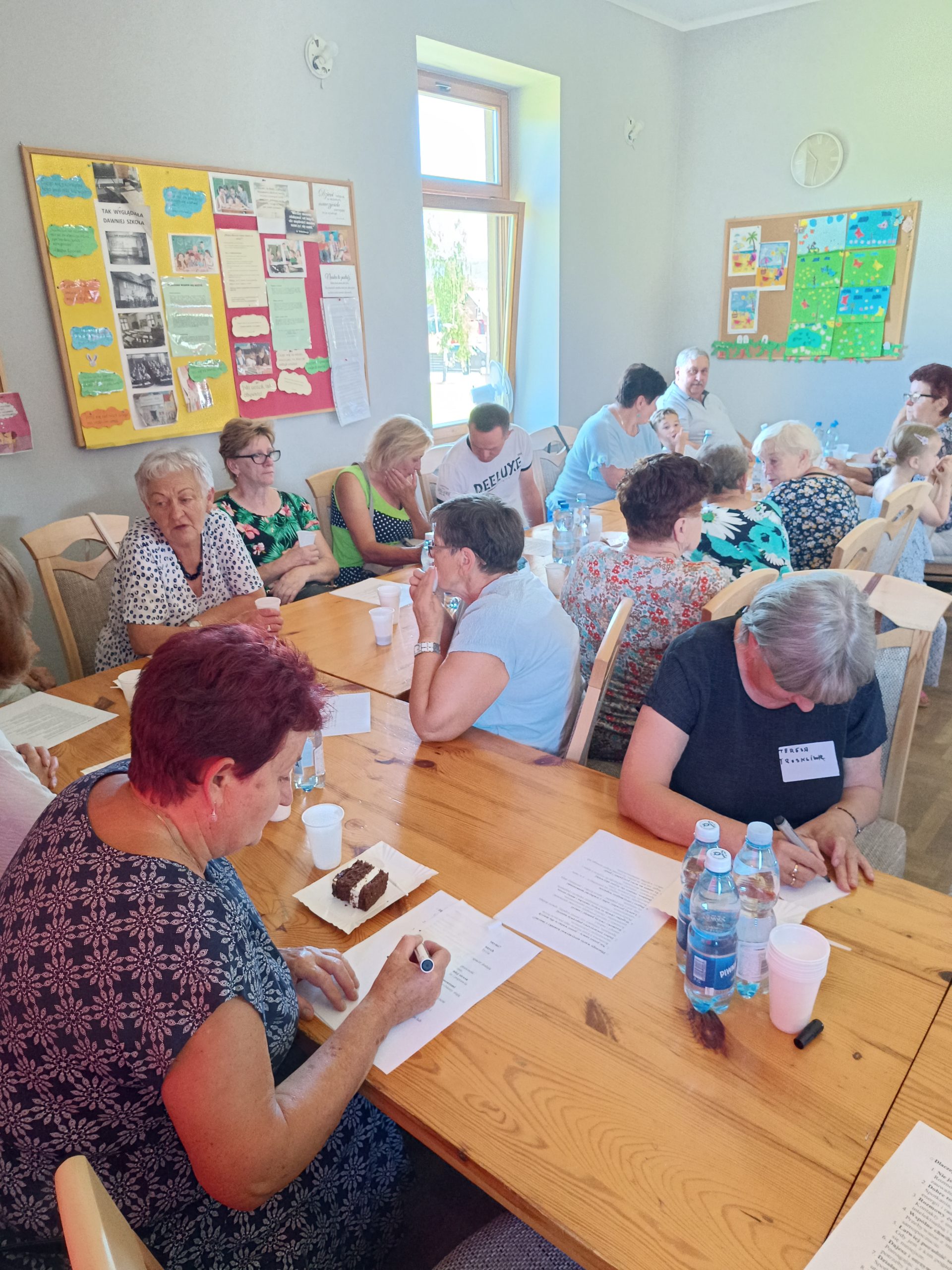 Uczestników serdecznie powitano przy aromatycznej kawie i herbacie oraz domowych wypiekach przygotowanych przez niezastąpione Koło Gospodyń Wiejskich w Wielkiej Wsi. W przyjaznej atmosferze odbyło się wzajemne zapoznanie i pierwsze zabawy integracyjne, które poprowadziła pani Maria Wantuch – doświadczona pedagog, wykładowczyni Akademii Tarnowskiej i aktywna członkini Uniwersytetu Trzeciego Wieku. Jej ciepło, zaangażowanie i umiejętność pracy z grupą stworzyły wyjątkową przestrzeń do wspólnej zabawy i współpracy.