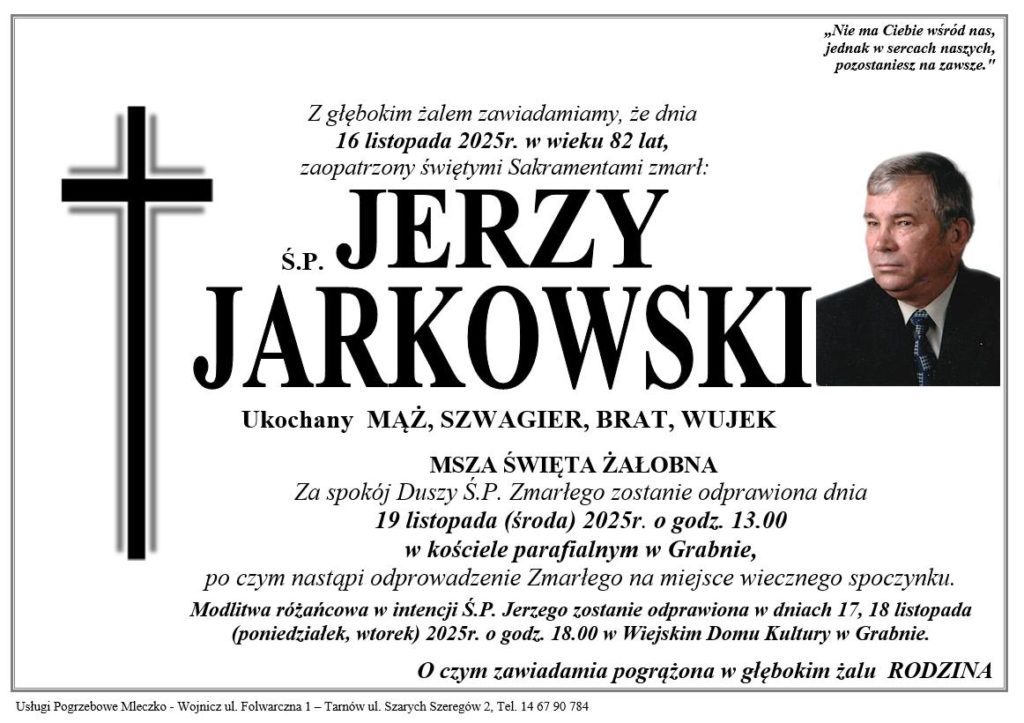 Śp. Jerzy Jarkowski był wieloletnim Radnym Rady Miejskiej w Wojniczu, sołtysem Grabna, Wiceprzewodniczącym Rady Gminy oraz Przewodniczącym Rady Nadzorczej Banku Spółdzielczego w Wojniczu.