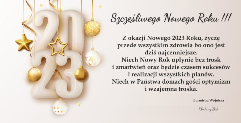 Szanowni Mieszkańcy Gminy Wojnicz, Burmistrz Wojnicza Tadeusz Bąk składa wszystkim Szczęśliwego Nowego Roku!! …