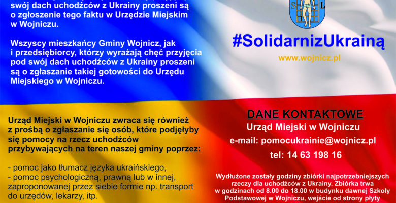 Mieszkańcy Gminy Wojnicz, którzy przyjęli pod swój dach uchodźców z Ukrainy proszeni są o zgłoszenie tego faktu w Urzędzie …