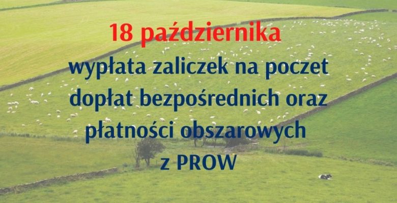 18 października Agencja Restrukturyzacji i Modernizacji Rolnictwa rozpoczyna wypłatę zaliczek na poczet dopłat bezpośrednich i …