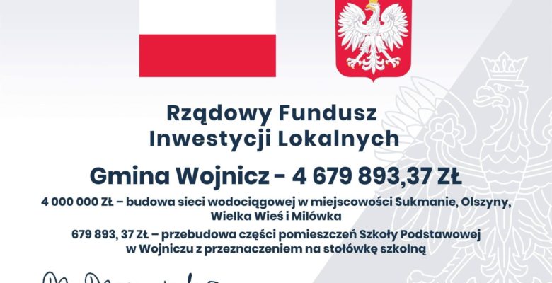 W ramach dofinansowania ze środków Rządowego Funduszu Inwestycji Lokalnych Gmina Wojnicz otrzymała wsparcie finansowe na …