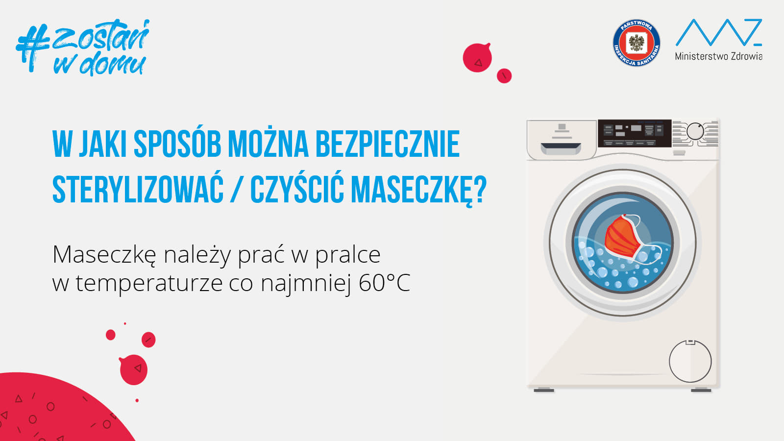 Ministerstwo Zdrowia przypomina, aby podczas zdejmowania maseczki jednorazowej nie dotykać nią oczu, nosa i ust. Maseczkę należy wyrzucić do kosza na odpady, a następnie umyć ręce wodą i mydłem. Z kolei wielorazowe maseczki wymagają regularnej sterylizacji – taką maseczkę należy prać w temperaturze co najmniej 60 st. C.